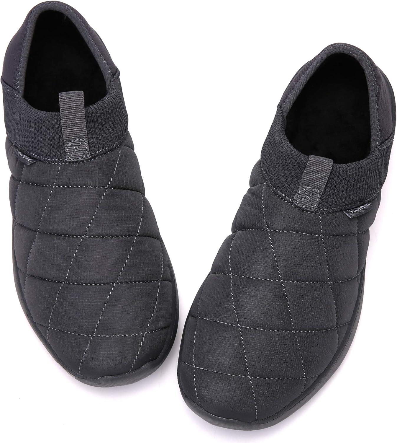 KUBUA Slippers for Men and Womens Indoor House Shoes Plush Slip on Outdoor Garden Loafers(Dark Grey)